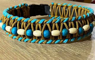 Demi Lune est notre jument miniature, une petite jument vraiment minuscule puisqu’elle mesure 72 cm, et pèse à peine 75 kg. Impossible de trouver du matériel à sa taille. Ce qui m’a donné l’envie et l’idée de lui fabriquer son matériel moi même, sur mesure. De là, j’ai commencé à fabriquer des colliers et des laisses pour mes chiens, et ceux de mes amis. Et l’aventure était lancée…